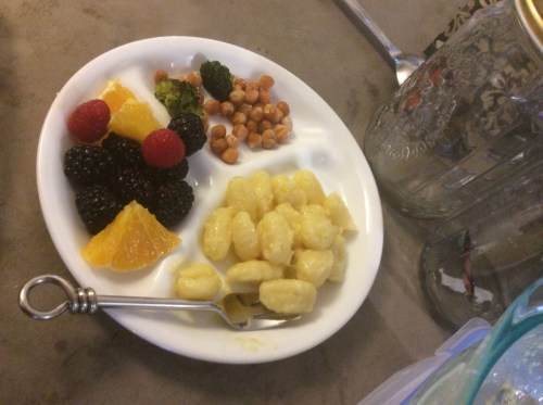 Image January 26, 2015January 8, 2019 by seesbeauty Gnocchi, raspberries, blackberries, and orange, baked broccoli, roasted chickpeas Share this: Click to share on X (Opens in new window) X Click to share on Facebook (Opens in new window) Facebook Like Loading...
