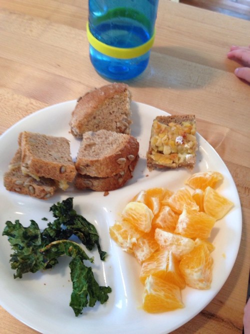 Image March 5, 2015January 8, 2019 by seesbeauty Goat cheese and tempeh on sunflower bread, orange, kale chips Share this: Click to share on X (Opens in new window) X Click to share on Facebook (Opens in new window) Facebook Like Loading...