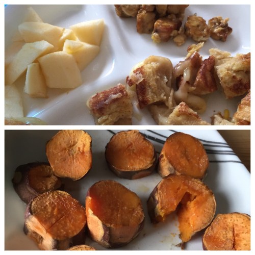 Image April 14, 2015January 8, 2019 by seesbeauty Vegetable-grilled cheese-French toast, tempeh, apple, baked sweet potato Share this: Click to share on X (Opens in new window) X Click to share on Facebook (Opens in new window) Facebook Like Loading...