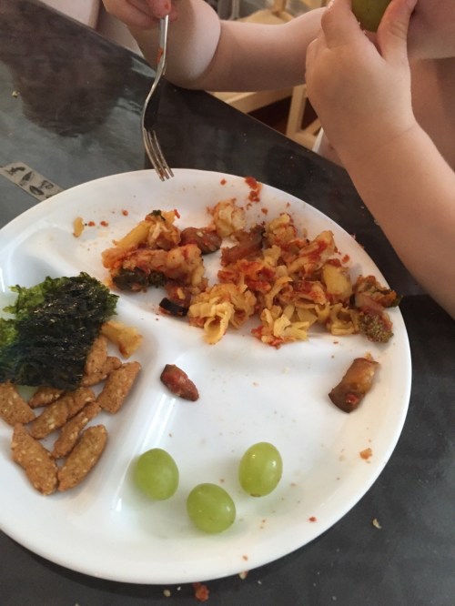 Image July 22, 2015January 8, 2019 by seesbeauty Quinoa pasta with eggplant, kale, sheep cheese, and tomato sauce. Grapes, oat sticks, and nori Share this: Click to share on X (Opens in new window) X Click to share on Facebook (Opens in new window) Facebook Like Loading...